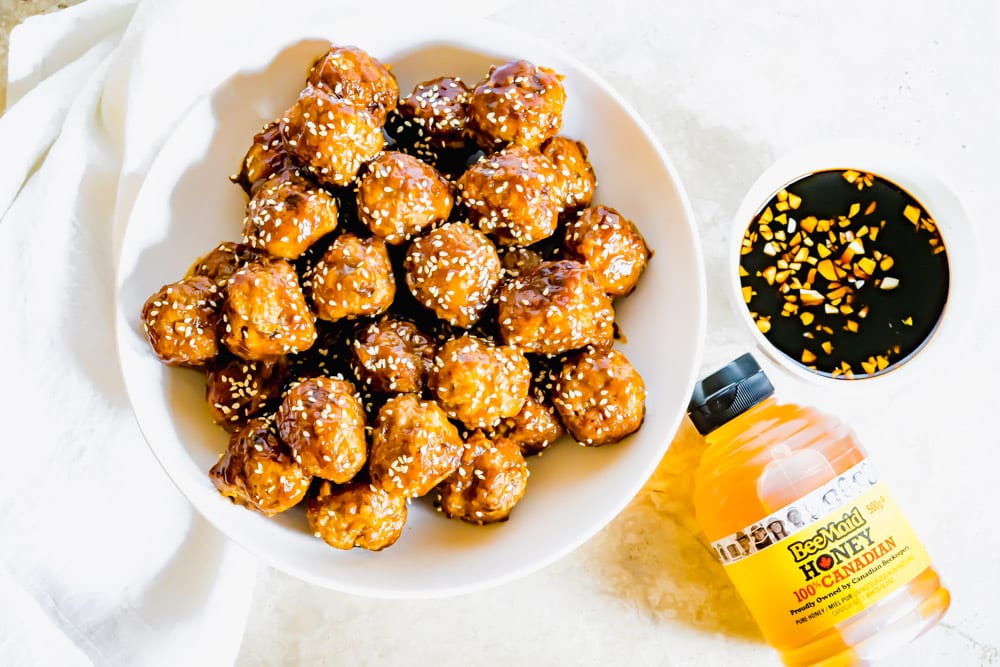 Add both the meatballs and the BeeMaid Honey sriracha sauce to the slow cooker. Stir to coat every meatball with sauce. Turn slow cooker to high and cook covered for 2 1/2 to 3 hours or until the internal temperature of the meatballs is 165F. During the last half hour of cooking open the lid of the slow cooker slightly by turning the lid a little off to the side or lifting the lid up a bit with a woodspoon. This will let some of the steam out and allow the sauce to thicken in its final stages. Stir the meatballs to coat evenly with the sauce, sprinkle with toasted sesame seeds and serve immediately over rice or noodles.