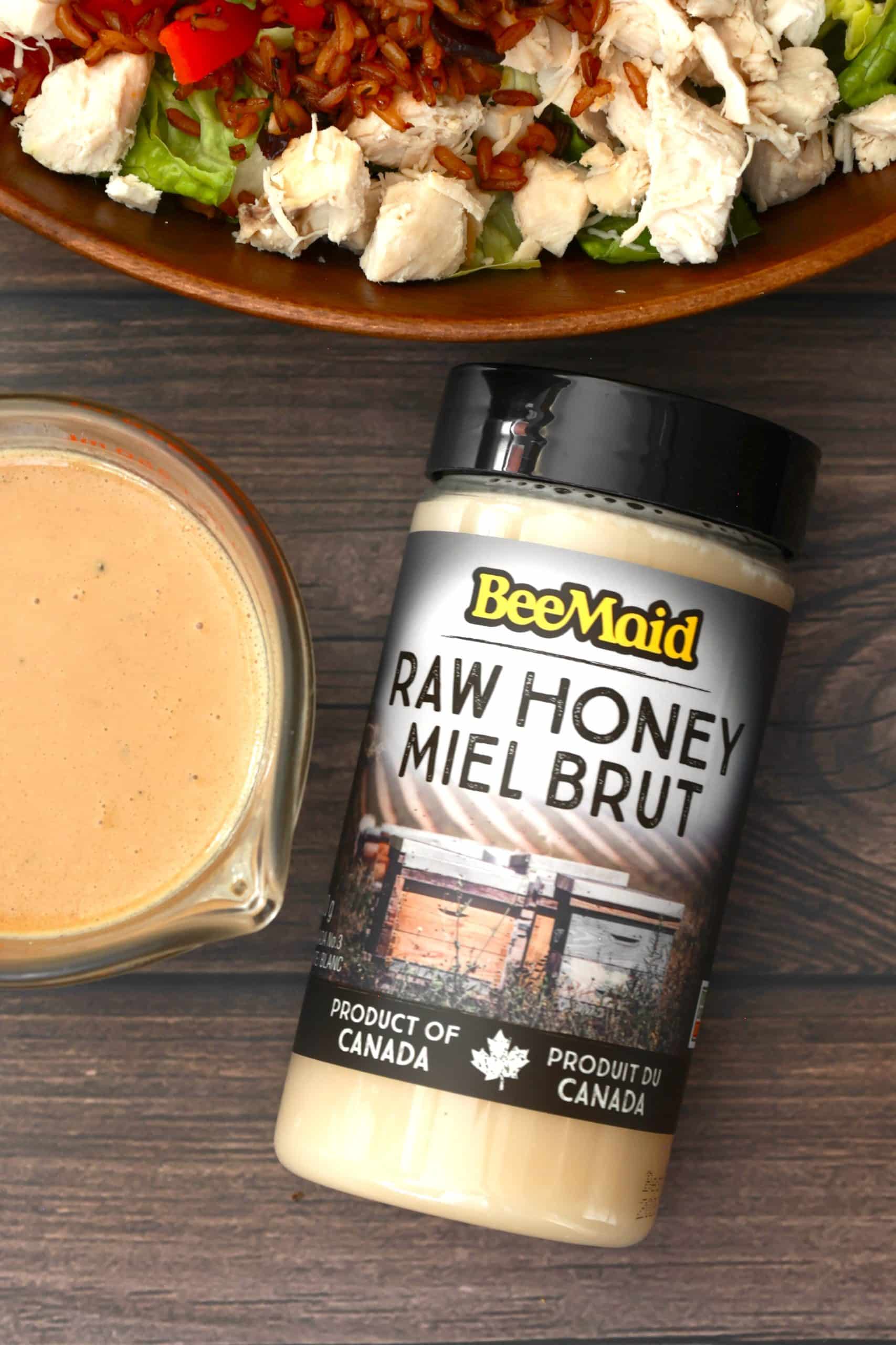 1. In a medium bowl, add the Greek yogurt, olive oil, balsamic vinegar, garlic, dijon mustard and BeeMaid Raw Honey. Season with salt and pepper to taste then mixt with a spoon to combine. Store in the fridge until ready to use.
